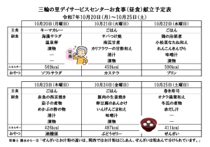 献立予定表(令和7年10月20日~11月1日分)をご参考ください