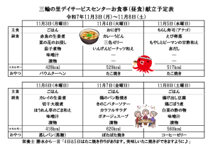 献立予定表(令和7年11月3日~11月15日分)をご参考ください