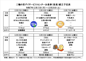 献立予定表(令和7年12月15日~12月27日分)をご参考ください