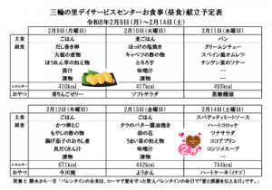 献立予定表(令和8年2月9日~2月21日分)をご参考ください