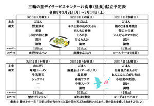 献立予定表(令和8年3月9日~3月21日分)をご参考ください