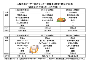 献立予定表(令和8年3月23日~4月4日分)をご参考ください