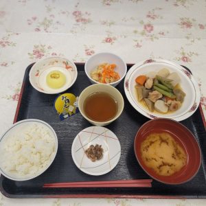 昼食にお月見まんじゅうを提供させて頂きました。かわいいうさぎの焼き印が入ってます。